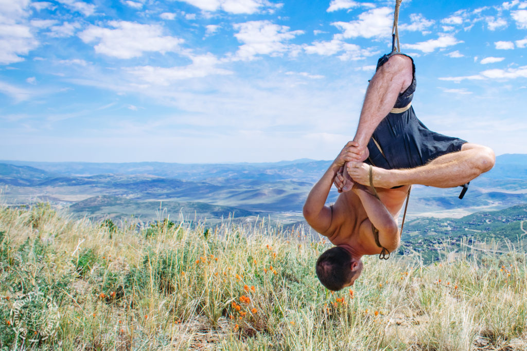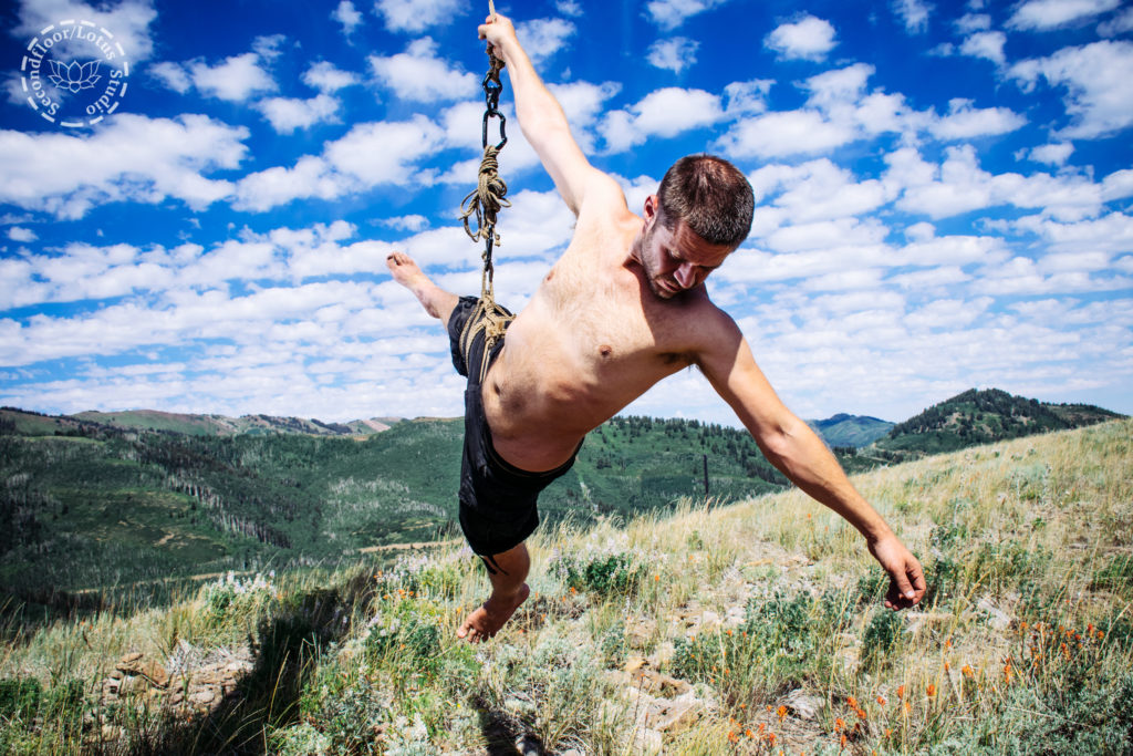 We took the lift to the top of the mountain and hiked to and area where we had previously scouted out an old, unused ski lift tower. There was a vertical bar that extended from about the middle of the tower (about 22ft up), so Secondfloor climbed the ladder to set a hard point on at the edge of the vertical bar. The experience of suspending in the thin mountaintop air was dizzying but incredible.